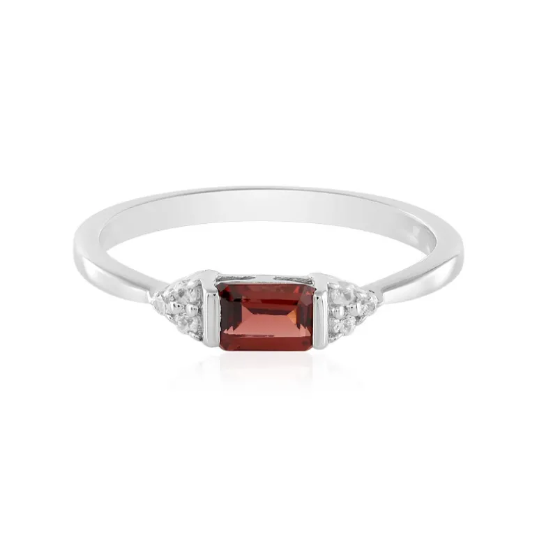 Dieser elegante Silberring hebt die tiefrote Ausstrahlung eines Mosambik-Granats hervor, dessen achteckiger Schliff seine natürliche Schönheit unterstreicht. Flankiert von funkelnden Zirkon-Akzenten aus Kambodscha mit einem Gesamtgewicht von 0,12 ct, schafft der Ring eine tadellose Balance zwischen Opulenz und Geschmack. Der aus platiniertem 925er Sterling Silber gefertigte Ring verbindet Langlebigkeit mit einem luxuriösen Gefühl. Das schlichte Design ist vielseitig einsetzbar und macht ihn zur perfekten Ergänzung für ein raffiniertes Dinner-Ensemble oder zu einem durchdachten Geschenk für einen geliebten Menschen.