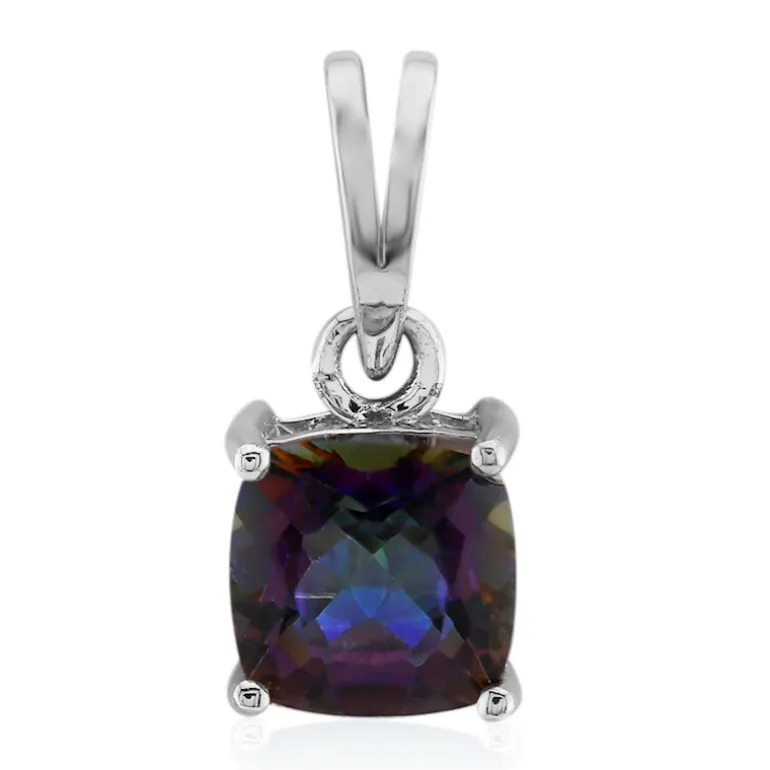 Entdecken Sie die bezaubernde Anziehungskraft dieses brasilianischen Mystic-Quarz-Anhängers, der mit seinem 1,25-karätigen Edelstein im Kissenschliff ein ganzes Spektrum an Farben ausstrahlt. Dieser 16×7 mm große Anhänger aus platiniertem 925er Sterlingsilber ist ein Zeugnis für raffinierten Geschmack. Dieser Anhänger ist perfekt geeignet, um sowohl der Tages- als auch der Abendgarderobe einen zauberhaften Touch zu verleihen und wird mit Sicherheit zu einem geschätzten Stück in Ihrer Sammlung.