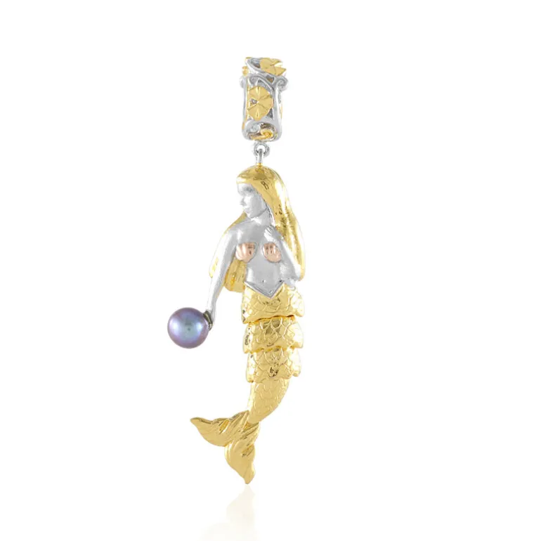 Entdecken Sie Eleganz mit diesem mystischen Süßwasserperlen-Silberanhänger mit einer glänzenden 5 mm Perle aus China. Das bezaubernde Design umfasst ein Meerjungfrauen-Motiv, das exquisit in 925er Sterling Silber mit einem Hauch von Goldakzenten gefertigt ist. Dieser Anhänger eignet sich perfekt, um sowohl legere als auch formelle Outfits mit einem Hauch von mythischem Charme zu versehen und ist ein herausragendes Stück für jede Schmucksammlung.