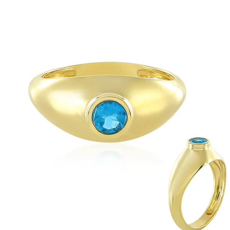 Tauchen Sie ein in das bezaubernde Azurblau dieses brasilianischen Neon-Apatits, der in einem glänzend vergoldeten Ring aus 925er Sterlingsilber gefasst ist. Der runde Schliff und die lebendige Farbe des Edelsteins bilden einen atemberaubenden Kontrast zu dem glänzenden Band, das etwa 2,01 Gramm wiegt. Dieser Ring eignet sich perfekt, um einen Farbtupfer in Ihr Outfit zu bringen. Er sorgt für Gesprächsstoff bei gesellschaftlichen Anlässen und verleiht Ihrer Geschäftskleidung einen Hauch von Eleganz. Lassen Sie dieses 0,216 Karat schwere Schmuckstück zum Mittelpunkt Ihrer Accessoire-Kollektion werden.