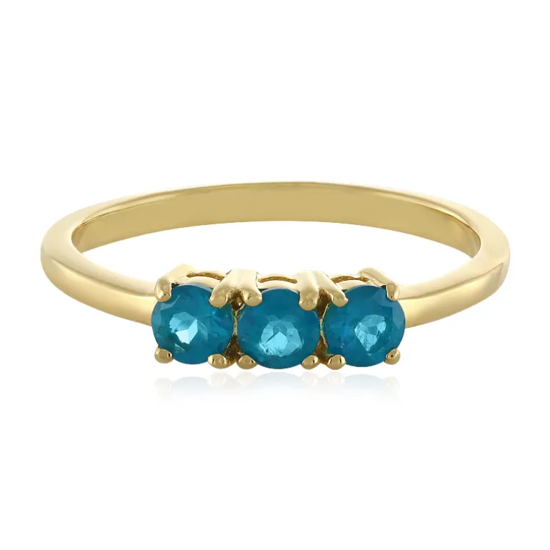 Brasilianischer Neonblauer Apatit Goldplattierter Silberring, 0,844ct