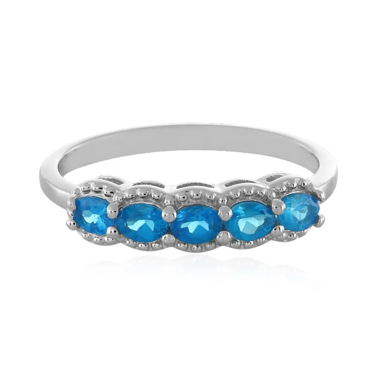 Dieser Ring aus platiniertem 925er Sterlingsilber ist mit fünf neonblauen Apatiten im Ovalschliff aus Brasilien mit insgesamt 0,884 Karat besetzt. Die Edelsteine sind fachmännisch in einem 22×20 mm großen Band angeordnet und verleihen einem klassischen Design einen modernen Touch. Dieser Ring ist ideal, um einen Farbakzent zu setzen, und kann sowohl tagsüber als auch abends getragen werden. Egal, ob Sie sich für einen besonderen Anlass herausputzen oder Ihren alltäglichen Stil unterstreichen wollen, dieser Ring wird Sie bezaubern.