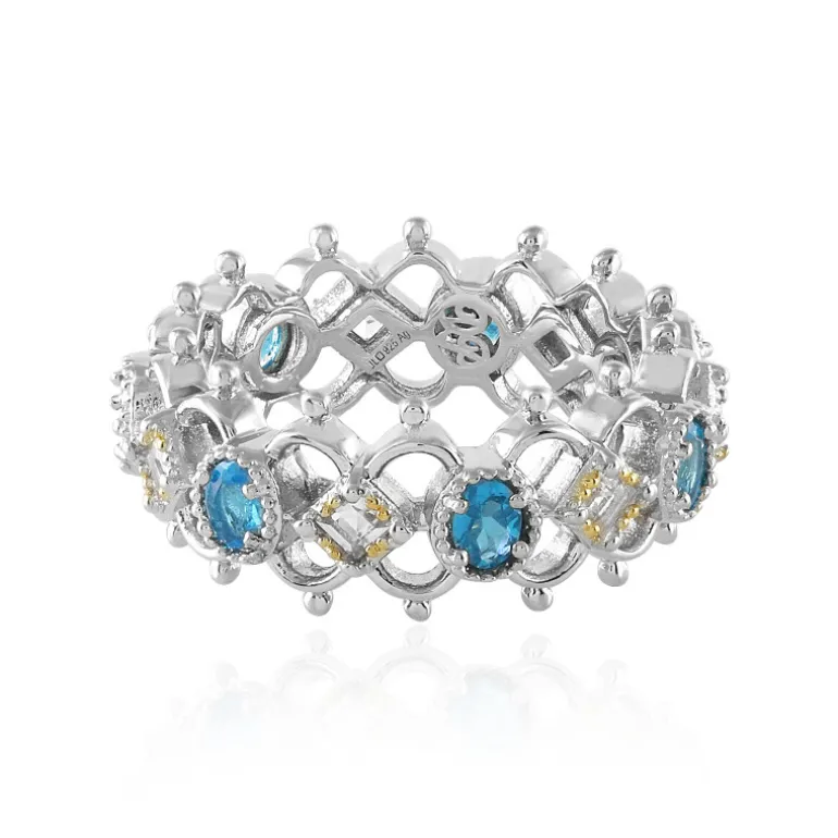 Dieser von Dallas Prince entworfene Ring aus Sterlingsilber zeigt ein zartes Spitzenmuster, das mit lebhaften neonblauen Apatiten besetzt ist. Er ist ein echtes Statement-Stück, das mit komplizierten Details versehen ist. Jeder Apatit-Edelstein verleiht Ihrem Ensemble einen Hauch von elektrisierendem Blau, was ihn zu einem idealen Accessoire sowohl für besondere Anlässe als auch für einen Hauch von Raffinesse in Ihrem Alltag macht. Die kühne Größe von 26×26 mm sorgt dafür, dass er an Ihrem Finger mit einer unbestreitbaren Präsenz hervorsticht.