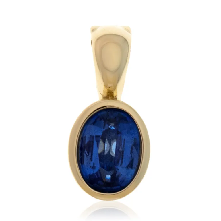 Dieser bezaubernde Anhänger zeigt einen nepalesischen Kyanit im Ovalschliff von 1,3 Karat, der elegant in eine warme Lünette aus 9-karätigem Gelbgold gefasst ist. Die Größe von 17×8 mm sorgt für eine zarte Präsenz, die sowohl zu legeren als auch zu formellen Ensembles passt. Dieses Schmuckstück ist ideal zum Verschenken oder um einen Hauch von Blau in Ihre Schmucksammlung zu bringen und verkörpert Raffinesse. Kombinieren Sie es mit einer einfachen Goldkette für schlichte Eleganz.
