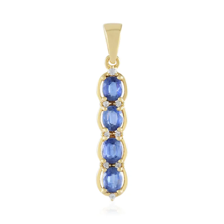 Entdecken Sie die Faszination unseres nepalesischen Kyanit-Anhängers aus vergoldetem Silber. Er ist mit vier atemberaubenden Kyaniten im Ovalschliff von insgesamt 1,532 Karat besetzt, die von kambodschanischen Zirkonen akzentuiert werden. Das elegante Design aus 925er Sterlingsilber mit einer reichhaltigen Goldplattierung macht ihn zu einem Highlight für jede Schmucksammlung. Perfekt für die Abendgarderobe oder besondere Anlässe, kombiniert mit einer einfachen Kette, um seine Schönheit zur Geltung zu bringen.