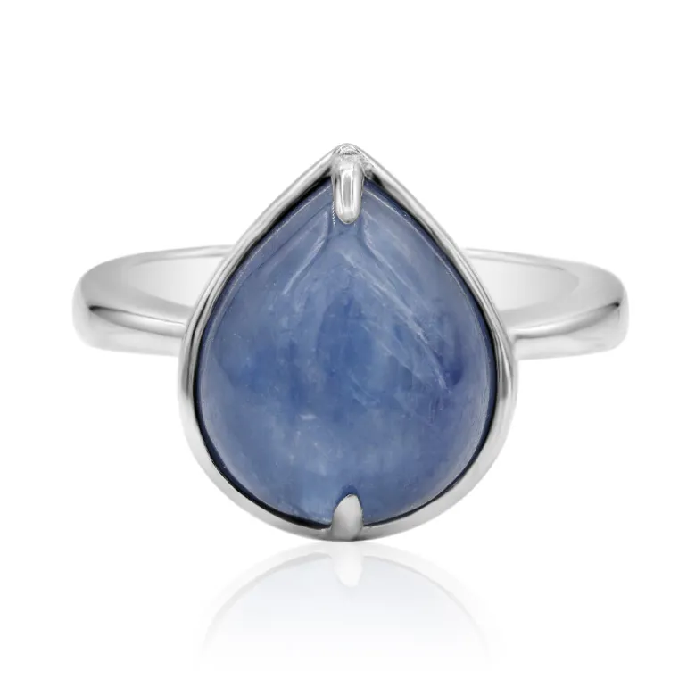 Entdecken Sie die ruhige Schönheit dieses nepalesischen Kyanit-Rings mit einem tropfenförmigen Edelstein von 4,59 Karat, eingefasst in hochwertiges 925er Sterlingsilber. Der sanfte Schimmer dieses Rings erinnert an einen klaren Sternenhimmel und lädt zu Tagträumen und Komplimenten gleichermaßen ein. Das glatte Silberband ergänzt den ruhigen blauen Farbton des Kyanits und macht ihn zu einem vielseitigen Schmuckstück, das sich sowohl für zwanglose Brunches als auch für elegante Abendveranstaltungen eignet. Genießen Sie den Hauch von Eleganz, den er jedem Ensemble verleiht.