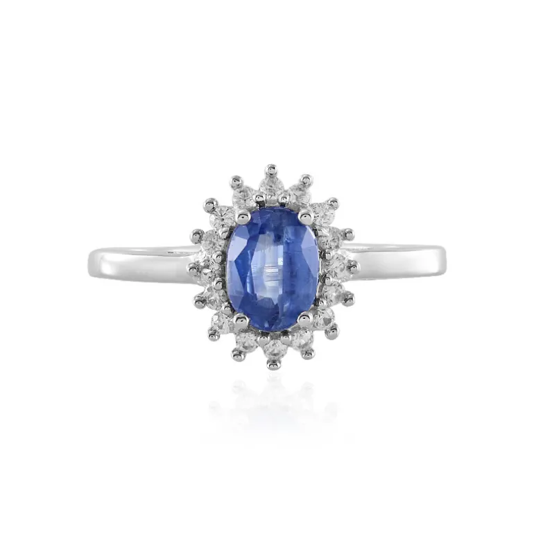 Entdecken Sie die Faszination des Himalaya mit diesem bezaubernden nepalesischen Kyanit-Ring, der von einem Halo aus kambodschanischen Zirkonen mit einem Gesamtgewicht von 0,319 ct hervorgehoben wird. Der Ring ist aus 925er Sterlingsilber mit einer luxuriösen Platinbeschichtung gefertigt und wiegt ca. 2,66 g. Der Kyanit im Ovalschliff mit 1,349 ct glänzt als Herzstück und macht diesen Ring zu einer idealen Wahl für besondere Anlässe und den Alltag. Kombinieren Sie ihn mit einem klassischen Abendkleid oder Ihrer bevorzugten Bürokleidung, um ihm einen Hauch von Eleganz zu verleihen.