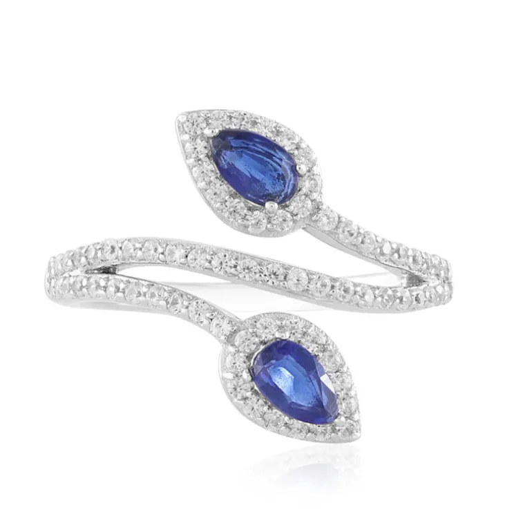Entdecken Sie die Eleganz dieses exquisiten Rings aus Sterlingsilber mit zwei nepalesischen Kyaniten in einer fesselnden Tropfenform. Dieses Schmuckstück mit einem Gesamtkaratgewicht von 1,044 ct wird durch funkelnde Zirkone aus Kambodscha veredelt. Der Ring eignet sich sowohl für formelle Anlässe als auch für den Alltag und passt hervorragend zu eleganter Abendgarderobe oder verleiht lässigen Outfits ein besonderes Flair.