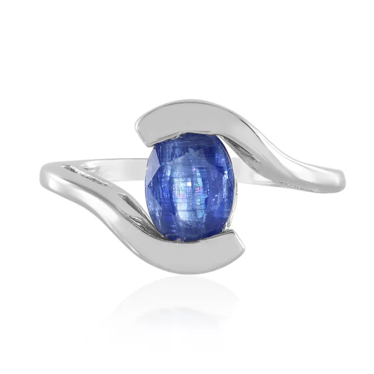 Entdecken Sie die majestätische Anziehungskraft des nepalesischen Kyanits mit diesem modernen Silberring. Der leuchtend blaue Edelstein im Ovalschliff mit einem Gewicht von 1,31 Karat ist in hochglänzendes 925er Sterlingsilber mit einem luxuriösen Platin-Overlay gefasst. Das schlichte, avantgardistische Design umgibt den Kyanit und sorgt für eine moderne Ästhetik, die jeder Garderobe einen raffinierten Touch verleiht. Dieser Ring eignet sich sowohl für legere als auch für formelle Anlässe und verbindet die ruhige Schönheit des Himalaya mit schickem Silberhandwerk.
