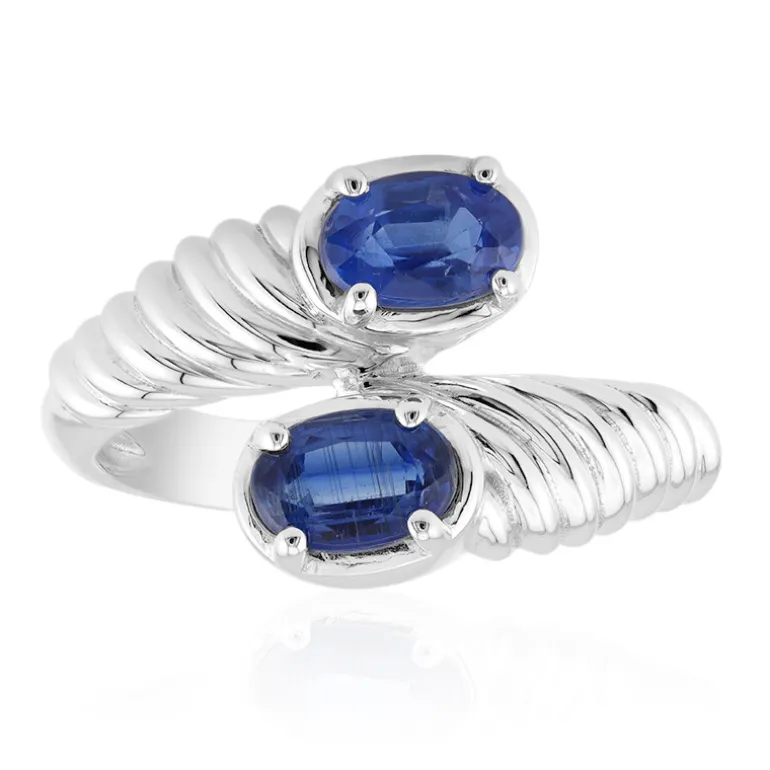 Erleben Sie die Faszination des Himalaya mit diesem nepalesischen Kyanit-Ring. Zwei auffällige Edelsteine im Ovalschliff mit einem Gesamtgewicht von 1,07 Karat haben einen tiefen saphirblauen Farbton und sind harmonisch in poliertes 925er Sterlingsilber gefasst. Das einzigartige Design des Rings ahmt fließendes Wasser nach und vermittelt ein Gefühl der Gelassenheit. Dieser Ring eignet sich ideal als Schmuckstück oder als Teil eines abendlichen Ensembles und ist ein eleganter Gesprächsanlass.