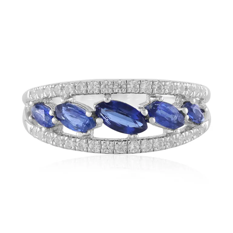 Entdecken Sie die Eleganz dieses wunderschön gearbeiteten nepalesischen Kyanit-Rings mit Edelsteinen im Marquiseschliff von insgesamt 0,711 ct. Die leuchtend blauen Kyanite werden durch funkelnde kambodschanische Zirkone ergänzt, die für einen Hauch von Glanz sorgen. Dieser Ring aus 925er Sterlingsilber eignet sich sowohl für legere als auch für formelle Anlässe. Kombinieren Sie ihn mit einem klassischen Outfit für einen raffinierten Look.
