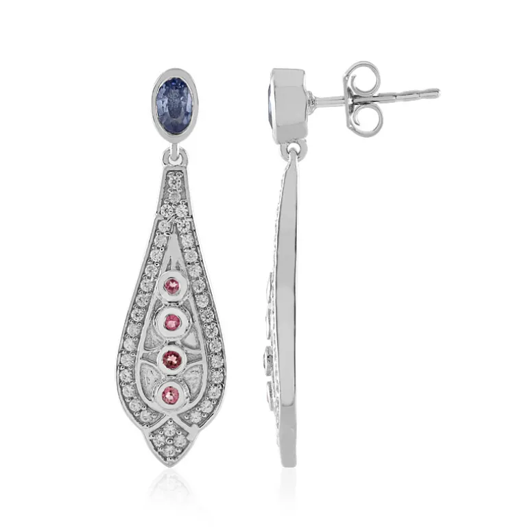 Ceylon Saphir & Rosa Turmalin Silber Ohrringe, 1.085ct