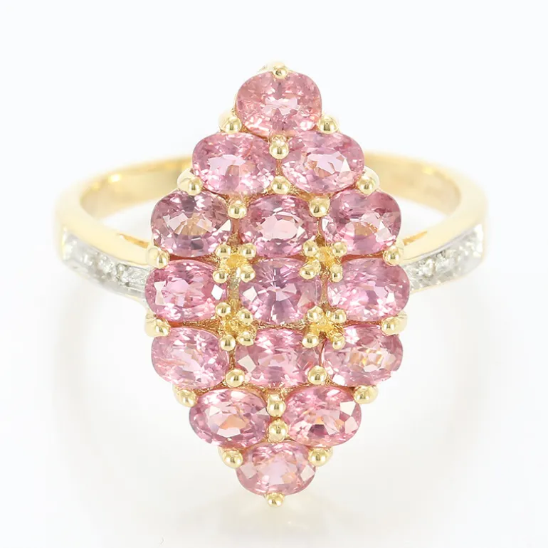 Entdecken Sie die Faszination der „Insel der Edelsteine“ mit diesem exquisiten Ring von AMAYANI, der aus 15 unerhitzten Padparadscha-Saphiren aus Sri Lanka von insgesamt 2,89 Karat besteht. Jeder einzelne Saphir ist in eine üppige ovale Form geschliffen, um seinen pfirsichfarbenen Farbton zur Geltung zu bringen. Das 18-karätige Goldband bringt die leuchtenden Farben noch besser zur Geltung, während 4 SI-Diamanten einen funkelnden Kontrast bilden. Diese 3,78 g schwere goldene Schönheit ist die perfekte Ergänzung zu einer raffinierten Abendgarderobe oder ein luxuriöser Zusatz zu Ihrem Alltagsstil.