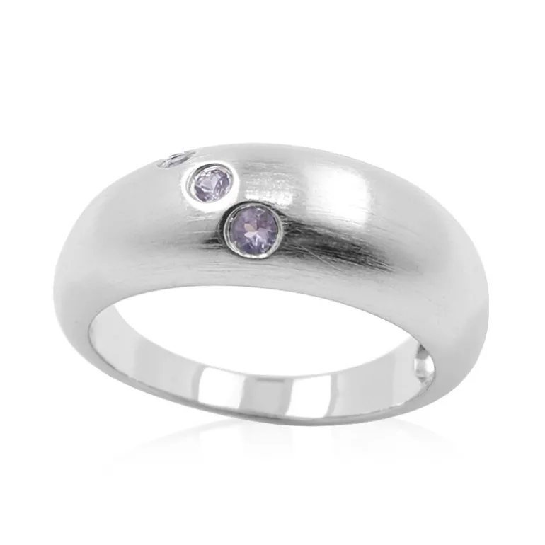 Dieser minimalistische Ring präsentiert die natürliche Schönheit von unerhitzten violetten Ceylon-Saphiren, elegant gefasst in glänzendem 925er Sterlingsilber. Mit einem Trio von Saphiren im Rundschliff von insgesamt 0,114 Karat, die aus den renommierten Minen Sri Lankas stammen, verbindet dieses Schmuckstück modernes Design mit einem Hauch von zeitloser Klasse. Es ist leicht und bequem, perfekt für den täglichen Gebrauch, und wertet sowohl Freizeit- als auch Abendkleider auf. Ein charmantes Geschenk für einen besonderen Menschen oder eine wunderbare Freude für Sie selbst.