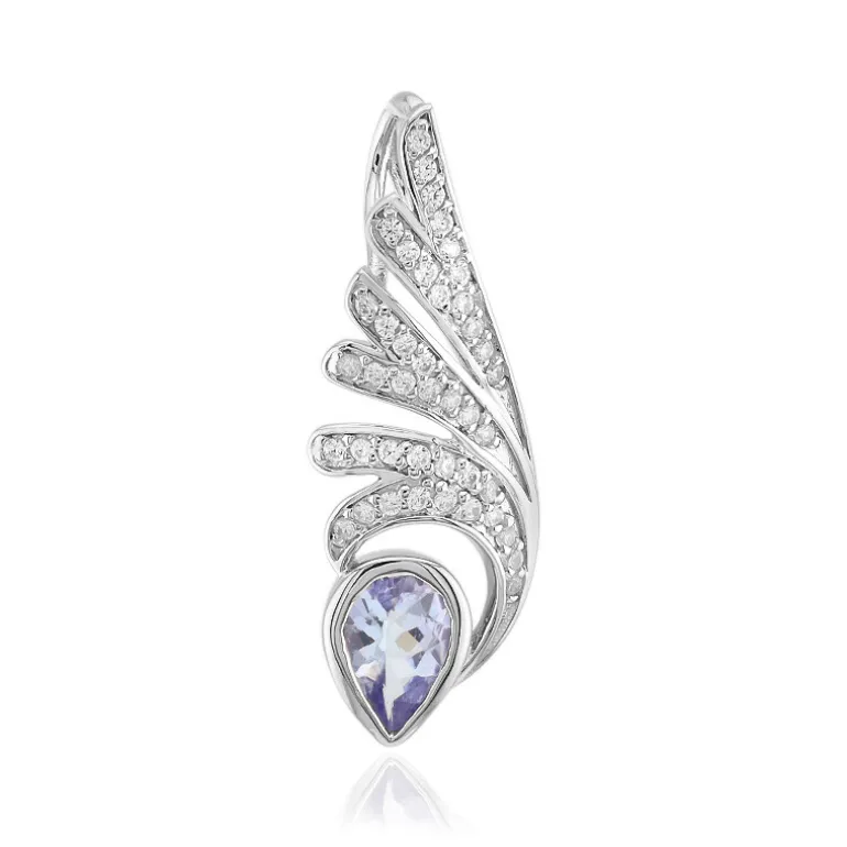 Entdecken Sie die Eleganz dieses exquisiten Tansanit-Anhängers aus der Kollektion Monosono. Der birnenförmige Tansanit von 0,657 Karat wird von 42 Zirkonen aus Kambodscha ergänzt, die in platiniertes 925er Sterlingsilber gefasst sind. Dieses anmutige Accessoire wertet jedes Ensemble auf, perfekt für Abendveranstaltungen oder als eleganter Begleiter im Alltag. Sein einzigartiges Design verspricht, zu bezaubern und zu faszinieren.
