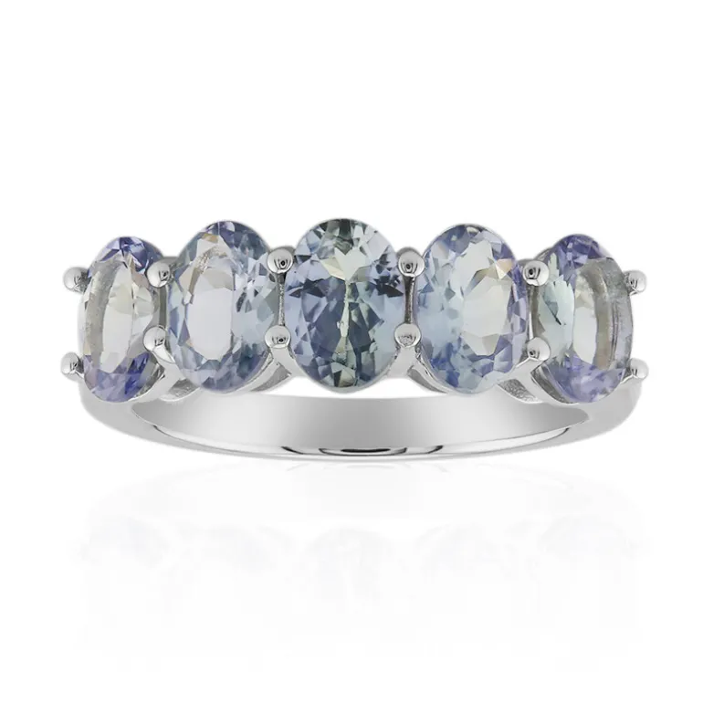 Lassen Sie sich von diesem atemberaubenden Ring aus 925er Sterlingsilber verführen, der ein Quintett von faszinierenden, unbehandelten Tansaniten im Ovalschliff enthält. Mit einem Gesamtkaratgewicht von 1,998 strahlen diese Edelsteine aus Tansania einen natürlichen und lebendigen blau-violetten Farbton aus und messen jeweils etwa 6×4 mm. Das schlanke Design sorgt für eine bequeme Passform, während das Funkeln der Edelsteine den Ring sowohl für den Alltag als auch für Abendveranstaltungen geeignet macht. Dieser Ring verleiht jedem Outfit einen Hauch von Raffinesse und ist ein luxuriöses Schmuckstück für Ihre Sammlung.
