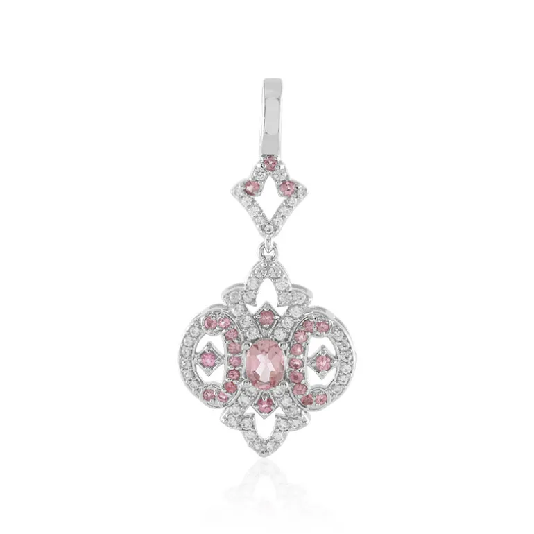 Nigerianischer rosa Turmalin & kambodschanischer Zirkon Silberanhänger, 1,055 ct