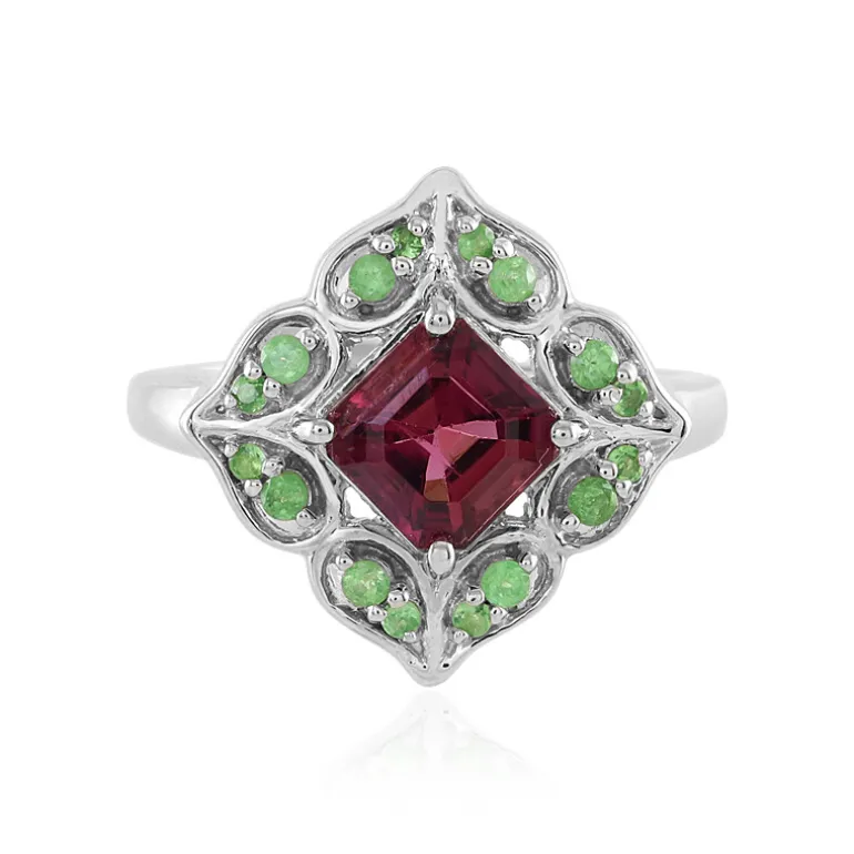 Nigerianischer Rosa Turmalin & Tsavorit Silber Ring, 1,55ct