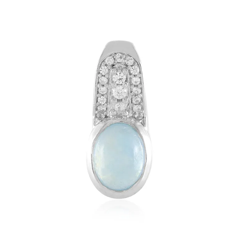 Entdecken Sie die ruhige Schönheit dieses ovalen Cabochon-Anhängers mit nigerianischem Ofiki-Aquamarin, der harmonisch durch funkelnde Zirkone aus Tansania ergänzt wird. Mit einem Gesamtgewicht von 1,624 Karat präsentiert dieses Schmuckstück einen 8x6mm großen Aquamarin, flankiert von schimmernden Zirkon-Akzenten, gefasst in platiniertem 925er Sterlingsilber. Dieser Anhänger ist ideal, um sowohl der Tages- als auch der Abendgarderobe einen Hauch von Eleganz zu verleihen und verspricht eine vielseitige Ergänzung für jede Schmucksammlung zu sein.