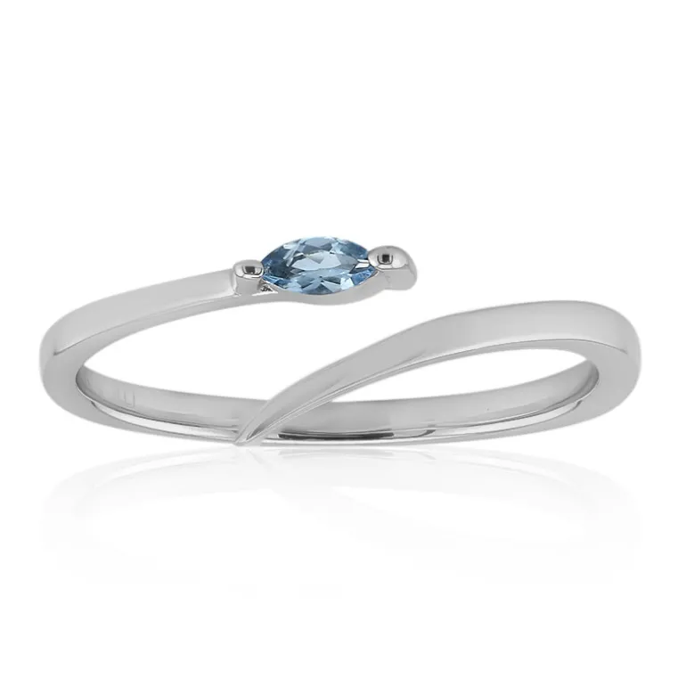 Dieser Ring aus platiniertem 925er Sterlingsilber mit einem zarten Ofiki-Aquamarin aus Nigeria und einem Gewicht von 0,051 ct verleiht Ihrer Kollektion einen Hauch von Blau. Der Aquamarin im Marquiseschliff ist ästhetisch gefasst, um das Licht einzufangen und den Betrachter zu fesseln. Das schlichte, moderne Silberband hat ein fließendes Design, das Raffinesse ausstrahlt und perfekt für die Eleganz des Tages oder den Glamour des Abends ist. Dieser anmutige Ring passt mühelos zu einer frischen weißen Bluse oder setzt einen farblichen Akzent zu einem kleinen Schwarzen und ist damit eine tadellose Wahl für jeden Anlass.