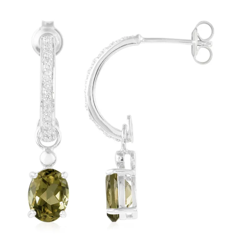 Diese Olivenquarz-Ohrringe aus Sterlingsilber bestehen aus zwei exquisiten Olivenquarz-Edelsteinen aus Brasilien, die durch 26 brillante weiße Topase ergänzt werden. Gefertigt aus 925er Sterlingsilber, bieten diese Ohrringe ein schickes und modernes Design. Mit ihren oval geschliffenen Steinen sind sie perfekt geeignet, um jedem Outfit einen Hauch von Eleganz zu verleihen, egal ob Sie sich für einen Abend oder einen besonderen Anlass herausputzen wollen.