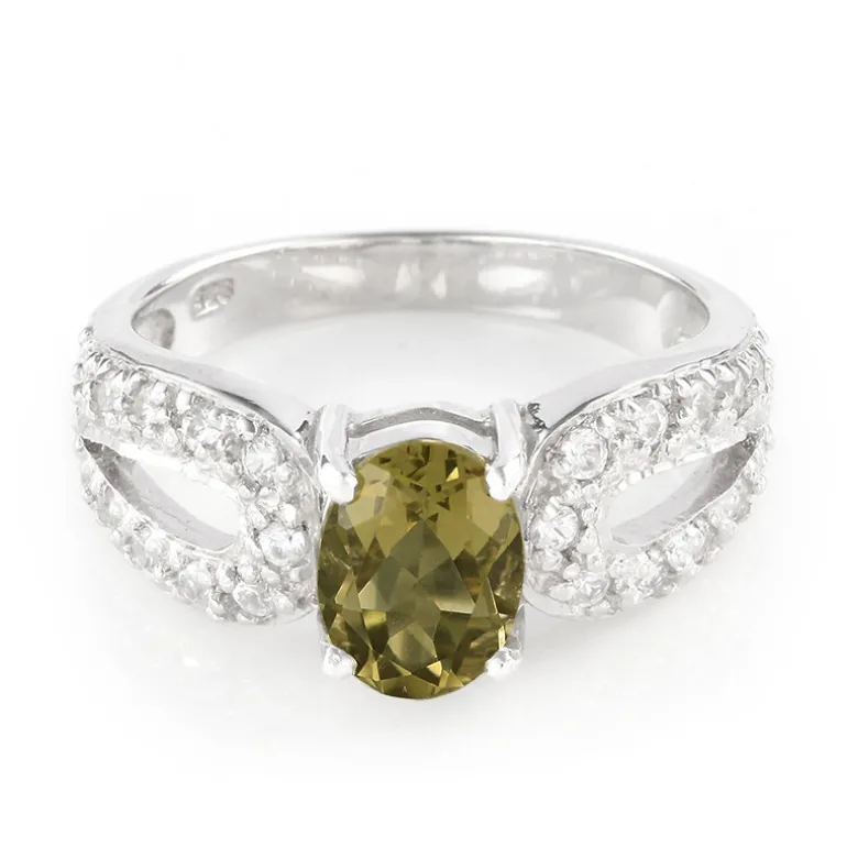Brasilianischer Olivenquarz 925 Silber Ring, 1,14ct