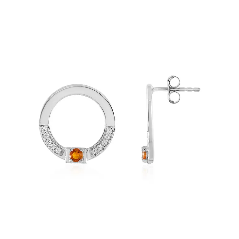 Entdecken Sie den lebendigen Charme dieser Silberohrringe mit 0,311 Karat tansanischen Orangen-Kyaniten im Rundschliff, die elegant mit funkelnden Zirkonen aus Kambodscha von insgesamt 0,238 Karat akzentuiert sind. Die Ohrringe sind für einen dauerhaften Glanz mit hochwertigem Platin überzogen, wiegen ca. 3,05 g und haben ein modernes, rundes Design. Sie sind ideal, um Ihrem Alltagslook einen Farbakzent zu verleihen oder ein Abendoutfit zu akzentuieren. Ihre Sonnenuntergangsfarben sind ein auffälliges Statement für verschiedene Anlässe.