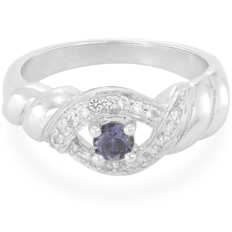 Entdecken Sie die Faszination dieses exquisiten Orissa Iolith- und Weißtopas-Sterlingsilberrings, ein wahres Zeugnis indischer Edelsteinkunst. In der Mitte des Rings ist ein fesselnder Iolith gefasst, der für seinen faszinierenden violett-blauen Farbton bekannt ist, während der Glanz von 20 brasilianischen weißen Topas-Edelsteinen mit einem Gesamtgewicht von 0,174 Karat die Brillanz des Rings unterstreicht. Gefertigt aus hochwertigem 925er Sterlingsilber mit einem Gewicht von ca. 3,89 g ist dieses Schmuckstück ebenso haltbar wie schön. Das Design des Rings, das an die zeitlose Form eines Auges erinnert, verleiht ihm einen Hauch von Faszination. Dieser Ring ist ideal, um Freizeitoutfits einen Hauch von Raffinesse zu verleihen oder ein elegantes Abendensemble zu vervollständigen und verspricht einen schicken Auftritt bei jeder Gelegenheit.