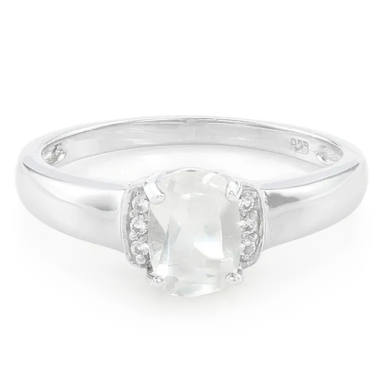 Entdecken Sie die Eleganz dieses Orthoklasrings mit einem 0,67 Karat schweren Edelstein aus Madagaskar. Das Stück aus 925er Sterlingsilber wiegt 2,04 g und wird von sechs brasilianischen Weißtopasen akzentuiert. Der antike Schliff verleiht ihm einen einzigartigen Touch, der sowohl für Freizeitkleidung als auch für elegante Anlässe geeignet ist. Kombinieren Sie ihn mit Ihrem Lieblingsoutfit, um jeden Look mit seinem subtilen, raffinierten Charme aufzuwerten.