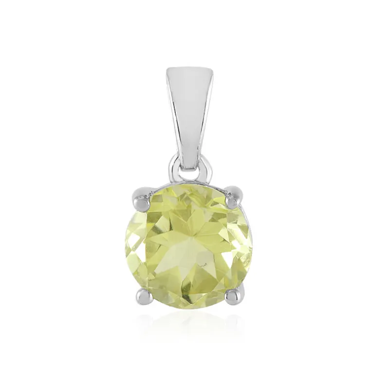 Dieser strahlende Anhänger besteht aus einem brasilianischen Ouro-Verde-Quarz im Rundschliff von 1,64 Karat, der in glänzendes, platiniertes 925er Sterlingsilber gefasst ist. Dieses leuchtende Schmuckstück verkörpert den lebendigen Geist seiner südamerikanischen Wurzeln und verleiht jedem Ensemble einen Hauch von sonniger Eleganz. Er ist ein außergewöhnlicher Akzent, der sowohl tagsüber als auch abends getragen werden kann. Er ergänzt Ihre Lieblingskette auf elegante Weise und erhellt Ihr Dekolleté mit seinem erfrischenden Grünton.
