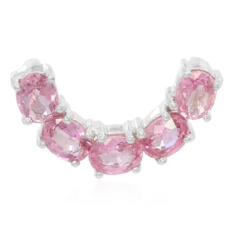 Dieser exquisite Anhänger besteht aus fünf Padparadscha-Saphiren im Ovalschliff aus Sri Lanka mit einem Gesamtkaratgewicht von 1,42 ct. Der 10 x 18 mm große Anhänger ist in 925er Sterlingsilber gefasst und strahlt eine moderne Eleganz aus. Er ist ein vielseitiges Accessoire für jede Schmucksammlung und eignet sich perfekt, um Ihrer Abendgarderobe einen Farbtupfer zu verleihen oder Ihre Freizeitgarderobe mit einem Hauch von Glamour zu versehen.