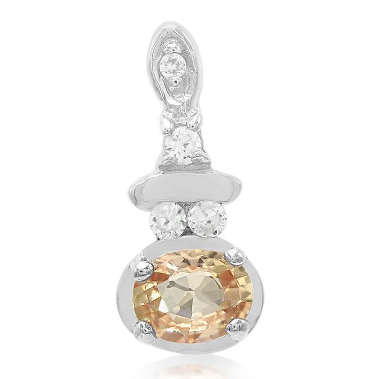 Dieser exquisite Padparadscha-Saphir-Anhänger aus Silber zeigt einen Edelstein aus Sri Lanka im Ovalschliff, der eine einzigartige Mischung aus rosa und orangefarbenen Tönen ausstrahlt. Er ist in platiniertes 925er Sterlingsilber gefasst und wird durch funkelnde Zirkon-Akzente aus Kambodscha ergänzt. Durch seine zierliche Größe eignet er sich sowohl für den Tag als auch für den Abend und verleiht einem legeren Outfit oder einem raffinierten Ensemble für besondere Anlässe einen Hauch von Eleganz.