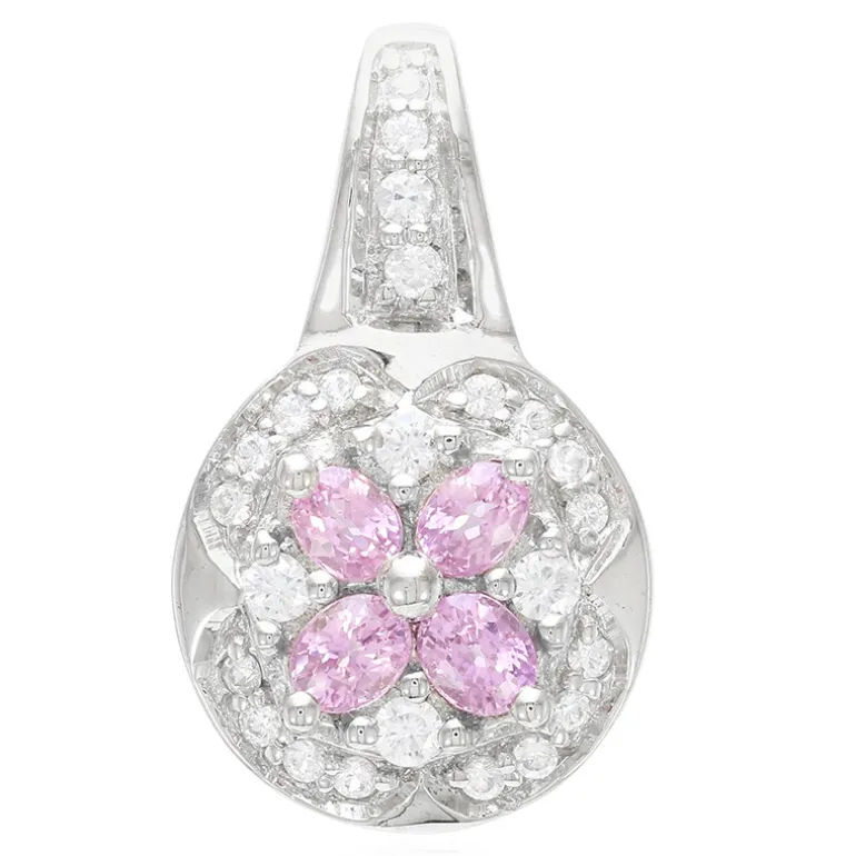 Dieser bezaubernde Anhänger mit vier oval geschliffenen Padparadscha-Saphiren aus Sri Lanka von insgesamt 0,63 Karat strahlt einen seltenen Charme aus. Umgeben von funkelnden Zirkon-Akzenten aus Kambodscha, die zusammen 0,515 Karat ergeben, ist dieses Stück in 925er Sterlingsilber mit einer glänzenden Platinoberfläche gefasst. Die Anordnung der Edelsteine in einem floralen Motiv macht es zu einem perfekten Accessoire für Frühlings- und Sommeroutfits. Ob zu einem legeren Brunch oder einer Abendveranstaltung, seine einzigartige Farbe und sein Glanz ziehen die Blicke auf sich.
