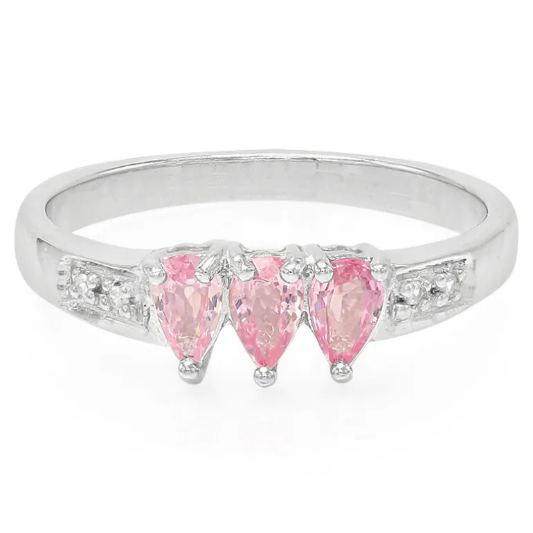 Entdecken Sie den subtilen Charme dieses atemberaubenden Rings mit Padparadscha-Saphiren aus Sri Lanka, der aus hochwertigem 925er Sterlingsilber mit einem eleganten Platin-Finish gefertigt ist. Die drei Saphire im Teardrop-Schliff mit insgesamt 0,6 Karat werden durch funkelnde Zirkone aus Kambodscha akzentuiert, die dem Ring einen Hauch von Brillanz verleihen. Die außergewöhnliche Handwerkskunst und der zarte Farbton machen diesen Ring zu einem idealen Accessoire, das sowohl zu legerer als auch zu gehobener Kleidung passt und jedem Ensemble einen Hauch von Farbe verleiht. Die zarten Rosatöne der Saphire ergänzen wunderbar warme und neutrale Farben und machen ihn zu einer vielseitigen Ergänzung Ihrer Schmucksammlung.