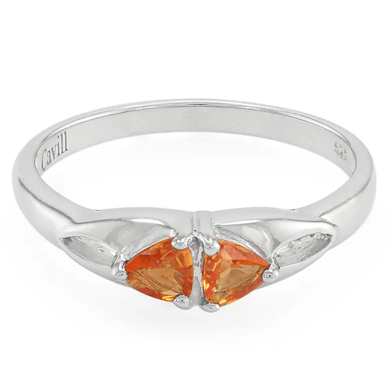 Treten Sie ins Rampenlicht mit diesem wunderschönen Ring, der zwei funkelnde Padparadscha-Saphire aus Sri Lanka von insgesamt 0,32 Karat enthält. Diese Edelsteine sind meisterhaft in einer Trilliant-Form geschliffen, um ihren feurigen orange-rosa Farbton zu maximieren. Der Ring aus platiniertem 925er Sterlingsilber mit einem Gewicht von ca. 1,58 Gramm verbindet Eleganz mit Beständigkeit. Er eignet sich sowohl für legere als auch für formelle Anlässe und verleiht jedem Outfit einen Hauch von Raffinesse.