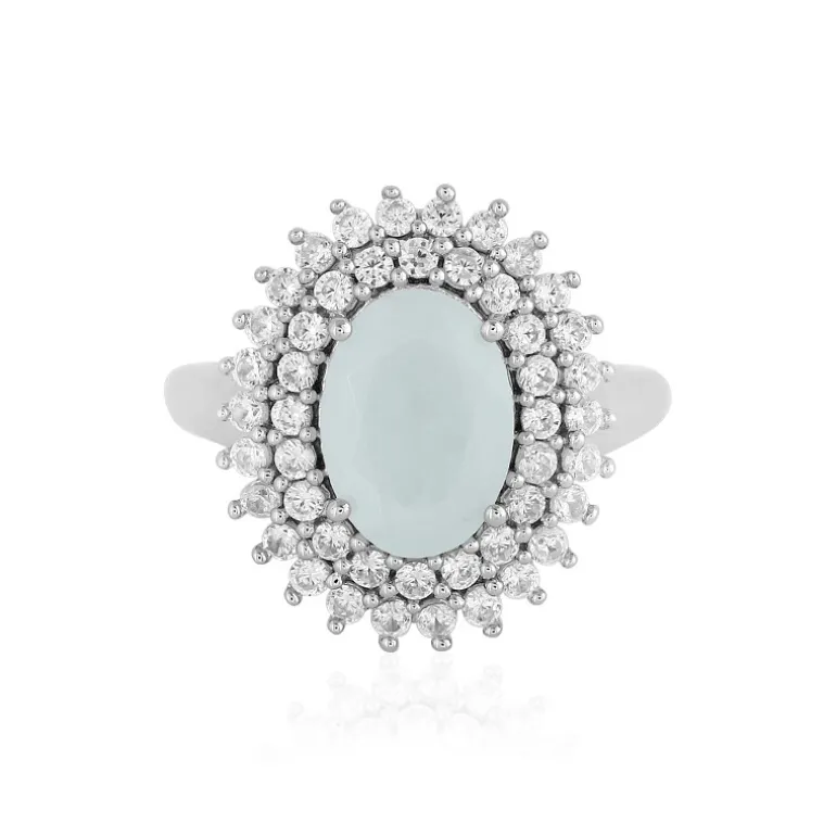Entdecken Sie die ruhige Schönheit des brasilianischen Paraiba-Opals, eingebettet in ein Bett aus funkelnden Zirkonen aus Kambodscha mit einem Gesamtgewicht von 0,968 ct. Dieser Ring ist aus hochwertigem 925er Sterlingsilber mit einer luxuriösen Platinbeschichtung gefertigt und verfügt über einen beachtlichen Opal von 1,586 ct mit einem ovalen Schliff, der Eleganz ausstrahlt. Der Halo aus Zirkonen im Rundschliff unterstreicht die beruhigenden Aquatöne des Opals. Dieser Ring mit den Maßen 25 x 21 mm zeugt von zeitlosem Design und ist ideal, um sowohl formellen als auch alltäglichen Outfits einen Hauch von Eleganz zu verleihen.