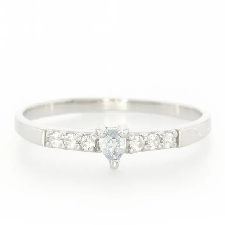 Entdecken Sie die Anziehungskraft dieses bezaubernden Rings aus Sterlingsilber mit einem faszinierenden Paraiba-Turmalin aus Mosambik in der Mitte, eingebettet in eine Gruppe von schimmernden Zirkonen aus Kambodscha. Der zarte Paraiba-Turmalin im Tropfenschliff (0,05 ct) strahlt einen unvergleichlichen ozeanischen Farbton aus, der durch die funkelnde Brillanz der Zirkone im Rundschliff (insgesamt 0,15 ct) ergänzt wird. Dieser elegante, mit hochwertigem Rhodium beschichtete Ring wiegt 1,18 g und verfügt über ein modernes Design, das jedem Outfit einen Hauch von Eleganz verleiht. Der zeitlose Charme dieses Rings ist ideal für besondere Anlässe oder als wertvolles Geschenk und wird Sie verzaubern.