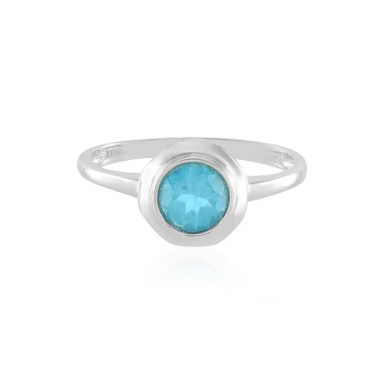 Brasilianischer Paraiba-Topas Platinplattierter Silberring, 0,88ct