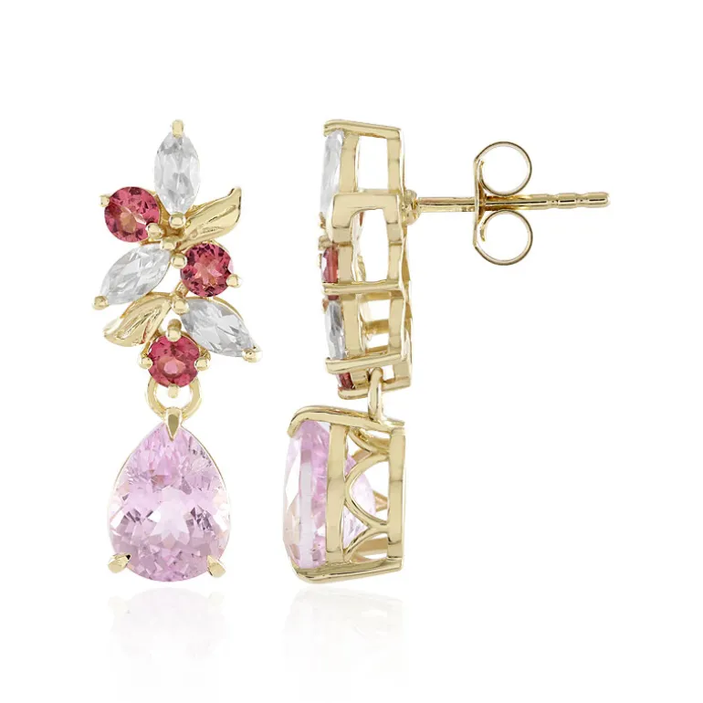 Entdecken Sie die Faszination dieser Ohrringe aus 9 Karat Gold mit exquisiten tropfenförmigen afghanischen Kunzit-Edelsteinen von 3,506 Karat. Umgeben von funkelnden Zirkonen aus Kambodscha und lebhaften nigerianischen Turmalinen mit einem Gesamtgewicht von 5,087 ct, strahlen diese kostbaren Ohrringe Raffinesse aus. Perfekt für elegante Soireen oder als luxuriöses Geschenk, verleihen sie jedem Ensemble einen Hauch von Glamour.
