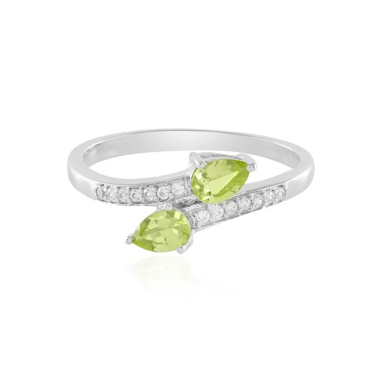 Entdecken Sie den strahlenden Charme dieses funkelnden Silberrings, der sich perfekt eignet, um jedem Outfit einen Hauch von Farbe zu verleihen. Mit zwei chinesischen Peridots von insgesamt 0,736ct, die in eleganten Tränen geschliffen sind und von 14 kambodschanischen Zirkonen im Rundschliff ergänzt werden, ist dieses Schmuckstück mit einem Gesamtgewicht von 0,902ct ein wahrer Schatz. Das Band aus 925er Sterlingsilber, das für zusätzlichen Glanz plattiert ist, wiegt etwa 2,3 g und bietet sowohl Haltbarkeit als auch Glanz. Das stilvolle Crossover-Design dieses Rings macht ihn zu einem idealen Accessoire sowohl für einen legeren Brunch als auch für formelle Abendveranstaltungen.