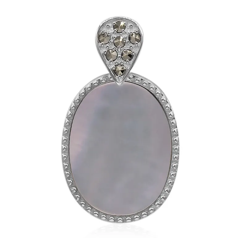Entdecken Sie die schillernde Anziehungskraft dieses ovalen Anhängers, der durch sein leuchtendes chinesisches Perlmutt in der Mitte besticht, umrahmt von funkelnden österreichischen Markasit-Steinen mit einem Gesamtgewicht von 0,084 ct. Fachmännisch aus 925er Sterlingsilber gefertigt, ist dieser Anhänger mit einem Gewicht von ca. 1,6 g und den Maßen 24 x 14 mm ein dezentes und doch atemberaubendes Accessoire. Dieser Anhänger ist ideal, um sowohl Tages- als auch Abendgarderobe einen Hauch von Raffinesse zu verleihen. Er ist eine zeitlose Ergänzung für jede Schmucksammlung.