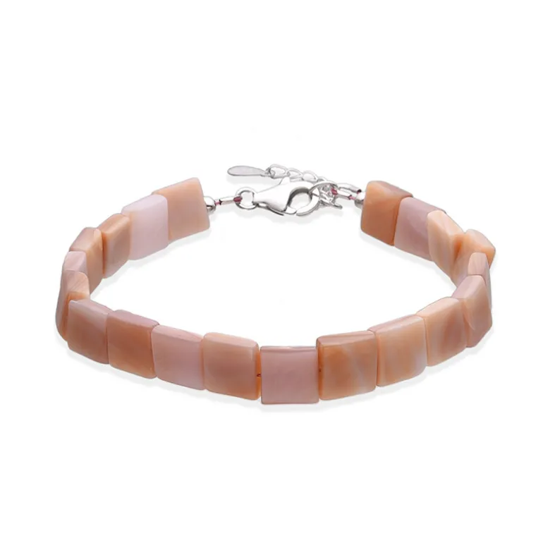 Tauchen Sie ein in die subtile Eleganz dieses raffinierten Armbands, das aus quadratischen Elementen aus chinesischem Perlmutt gefertigt ist. Jedes 8 mm große Quadrat spiegelt das natürliche Schillern des Meeres wider, das durch den Glanz des 925er Sterling Silbers ergänzt wird. Mit einer verstellbaren Länge von 18,5 bis 21,5 cm passt es perfekt an jedes Handgelenk. Als vielseitiges Schmuckstück lässt es sich problemlos von tagsüber bis abends tragen und passt zu allem, von der lässigen Bluse bis zum eleganten Abendkleid.