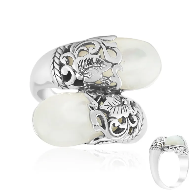 Erleben Sie Eleganz mit diesem schicken Ring aus Sterlingsilber mit zwei bezaubernden Perlmutt-Edelsteinen aus China. Die filigranen Silberdetails betonen die zarte Schönheit der Perlen, die in einem stilvollen 25×20 mm Design gefasst sind. Dieser Ring eignet sich perfekt für besondere Anlässe oder für den Alltag. Er lässt sich sowohl mit legeren als auch mit formellen Outfits kombinieren und verleiht Ihrem Ensemble einen Hauch von Anmut.