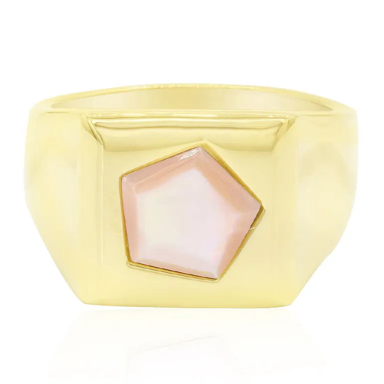 Chinesischer Perlmutt Ring aus vergoldetem Silber
