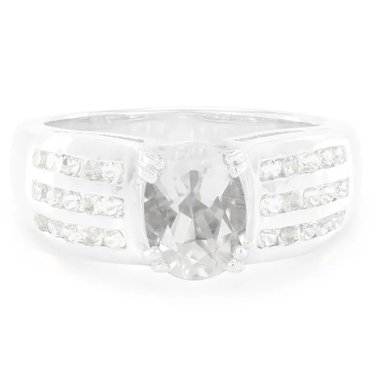 Entdecken Sie die ruhige Schönheit dieses brasilianischen Petalit-Rings, gekrönt von einem ovalen Mittelstück, eingebettet in 925er Sterlingsilber. Eingerahmt von Reihen funkelnder weißer Topase mit einem Gesamtgewicht von 0,416 ct, hat der Ring ein Gesamtgewicht von 1,446 ct. Sein opulentes Design eignet sich perfekt für die Abendgarderobe oder um Ihrem Alltagsoutfit einen Hauch von Eleganz zu verleihen.