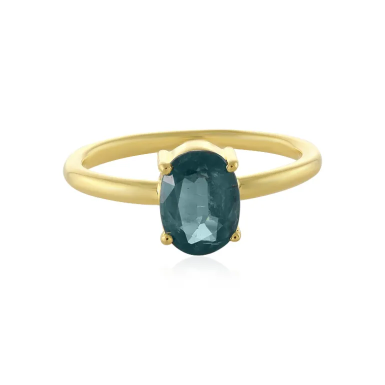 Indischer Petrol-Kyanit Goldplattierter Silberring, 1,477ct