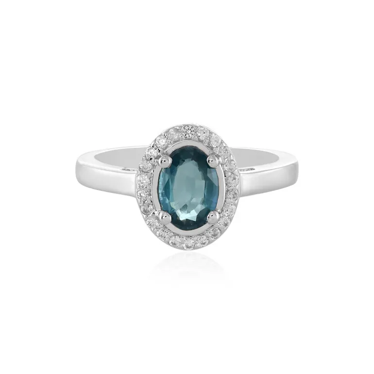 Entdecken Sie die Anziehungskraft dieses raffinierten Rings mit einem faszinierenden Petrol-Kyanit aus Indien, eingefasst in 925er Sterlingsilber. Dieser Edelstein ist kunstvoll in eine ovale Form geschliffen und wiegt 0,924 Karat, hervorgehoben durch 22 schimmernde Zirkon-Akzente aus Kambodscha von insgesamt 0,205 Karat. Der Ring hat ein Gesamtkaratgewicht von 1,129 ct. Er eignet sich perfekt, um jedem Outfit einen Hauch von Eleganz zu verleihen, und fällt sowohl bei zwanglosen Zusammenkünften als auch bei formellen Anlässen auf. Sein zeitloses Design macht ihn zu einer beliebten Ergänzung für jede Schmucksammlung.