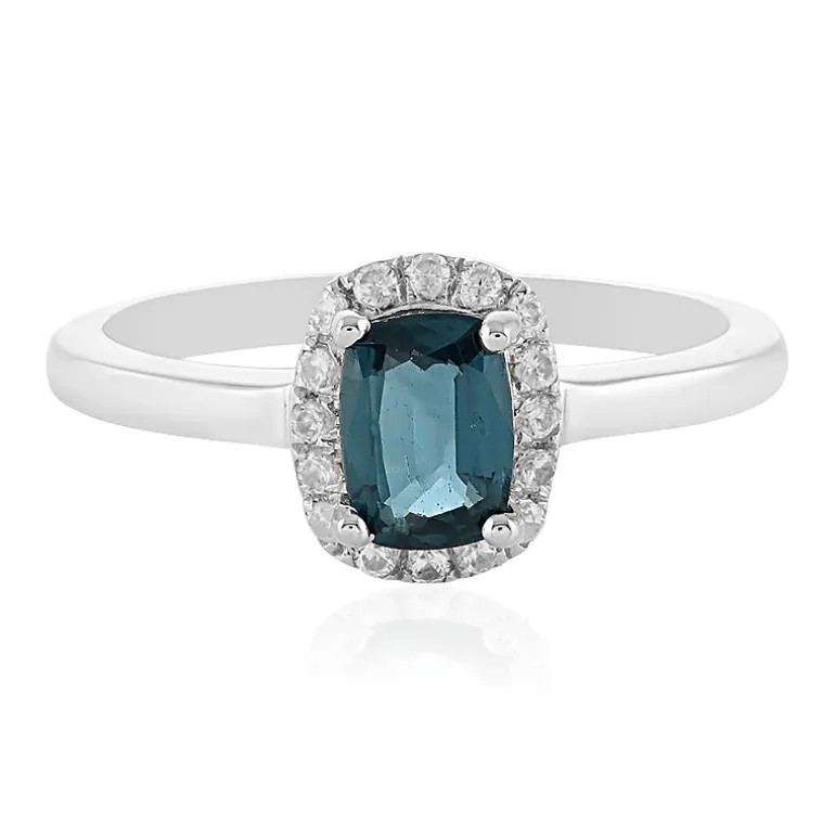 Dieser raffinierte Ring aus 925er Sterlingsilber ist mit einem faszinierenden Petrol-Kyanit von 1,113 Karat aus Indien besetzt, der für zusätzliche Eleganz im antiken Stil geschliffen wurde. Um den zentralen Edelstein herum funkeln 16 kambodschanische Zirkone von insgesamt 0,236 ct. und erzeugen einen atemberaubenden Halo-Effekt. Mit einem Gewicht von ca. 2,61 g strahlt dieses Schmuckstück Luxus aus und zieht garantiert alle Blicke auf sich. Kombinieren Sie es mit Ihrer Lieblingsabendgarderobe für einen Hauch von Glamour bei besonderen Anlässen.