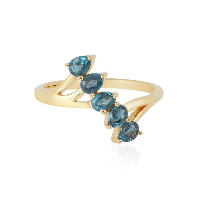 Entdecken Sie die bezaubernde Anziehungskraft dieses vergoldeten Rings aus Sterlingsilber, der fünf petrolfarbene Kyanit-Edelsteine aus Nepal elegant in Szene setzt. Jeder Kyanit im Tropfenschliff hat einen faszinierenden Farbton, insgesamt 0,936 Karat und ist in einem modernen Design gefasst. Die Abmessungen von 21×19 mm sorgen dafür, dass dieser Ring ein Statement abgibt, ohne überwältigend zu wirken. Das vergoldete 925er Sterlingsilberband verleiht ihm einen Hauch von Wärme und Luxus. Dieser Ring eignet sich perfekt, um einem modernen Ensemble einen Farbtupfer zu verleihen oder ein Abendoutfit zu vervollständigen – er wird Sie begeistern.