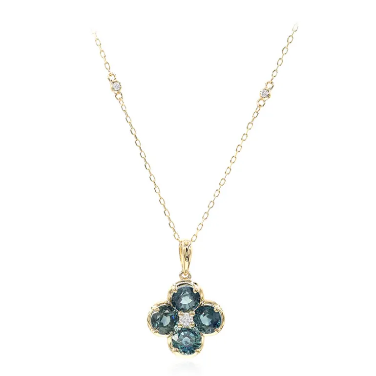 Entdecken Sie die Eleganz dieser Cirari-Halskette mit erlesenen petrolfarbenen Saphiren aus Madagaskar. Die Edelsteine werden durch funkelnde Diamanten ergänzt, die in 14 Karat Gelbgold gefasst sind. Mit seinem einzigartigen Farbton ist dieses Collier perfekt geeignet, um jedem Abendoutfit Raffinesse zu verleihen. Sie ist ideal für besondere Anlässe oder zum Verschenken und passt sowohl zu formellen als auch zu legeren Outfits.